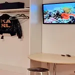 Denne ferielejlighed er udstyret med kaffe- og tefaciliteter, et fladskærms TV med satellitkanaler på hver enhed.